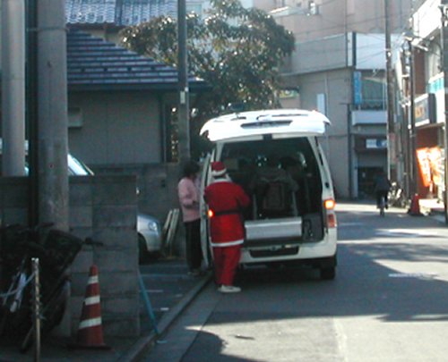 今日でかけたら荷物を、仕分けているサンタさんに会いました。目があってお互いにっこり。