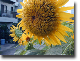近年見たことがないような、大きなヒマワリにめぐりあいました。ずっと探していた、2階にゆうにたどり着くようなヒマワリです。種類も細分化してるのですね。